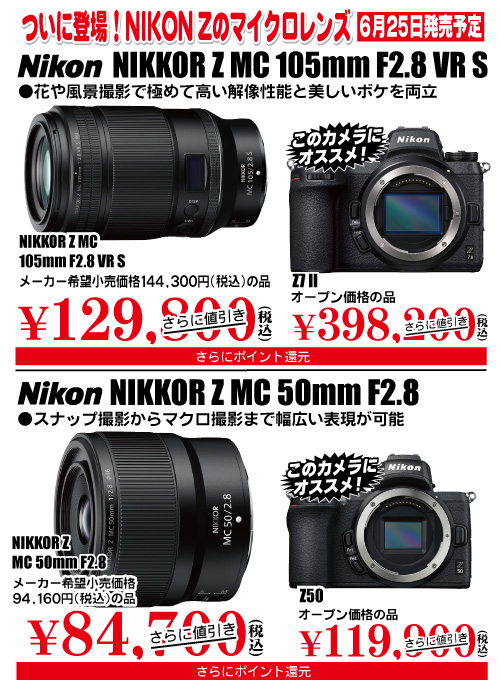 【6月25日】Nikon NIKKOR Z MC 105mm f/2.8 VR S・NIKKOR Z MC 50mm f/2.8発売 - トップカメラ最新情報