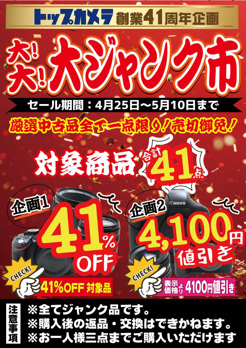 期間中 3階中古品・ジャンク品に限り 5%OFF!!